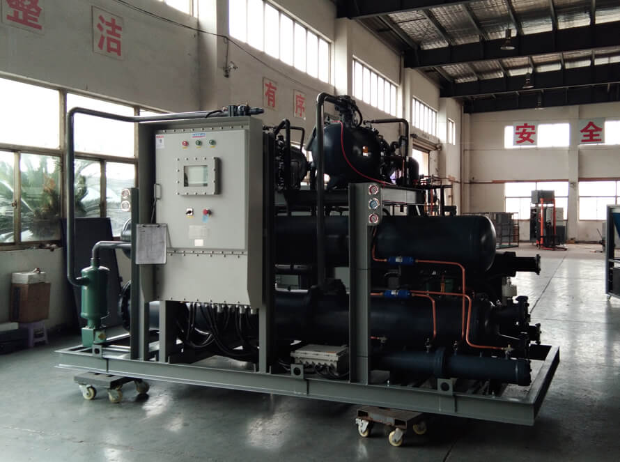 6.高效、節(jié)能 :大冷量機組采用半封閉螺桿壓縮機帶經(jīng)濟器運行,提高了運行效率,同時低溫級蒸發(fā)器、冷凝器可選用進口品牌316L不銹鋼板式換熱器,采用電子膨脹閥進行制冷劑的微量準確調(diào)節(jié),確保了機組部分載荷及滿負荷均能高效節(jié)能運行;
