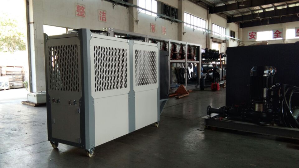 冷水機組是用于工業(yè)生產(chǎn)或?qū)嶒灂r控溫、恒溫、降溫、冷卻等的設(shè)備。冷水機組工作原理是先向機內(nèi)水箱注入一定量的水/載冷劑,通過冷水機組制冷系統(tǒng)將水/載冷劑冷卻,再由水泵將低溫冷卻水/載冷劑送入需冷卻的設(shè)備,冷水機組冷凍水/液將熱量帶走后溫度升高再回流到水箱,達到冷卻的作用。