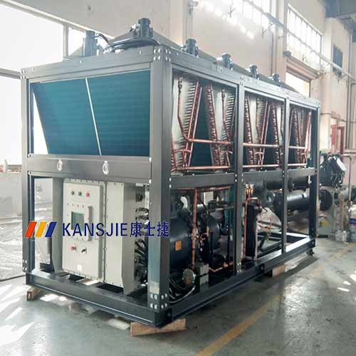 風(fēng)冷式乙二醇螺桿式防爆制藥用冷水機和水冷式乙二醇螺桿式防爆制藥用冷水機雖然都是乙二醇螺桿式防爆制藥用冷水機,可是機組自身冷卻的方法不同,因此在裝置方法也是不同的。風(fēng)冷式比較便利,接上水管和電源就能夠運轉(zhuǎn)了,可是制冷作用比水冷式乙二醇螺桿式防爆制藥用冷水機要稍差,由于風(fēng)冷式乙二醇螺桿式防爆制藥用冷水機的冷卻方法是空氣,而空氣受環(huán)境溫度影響較大,而組裝置方位也需求在制冷機組四周留有空間。水冷式乙二醇螺桿式防爆制藥用冷水機需要裝置冷卻水塔為機組冷卻,在管道工程上比風(fēng)冷式乙二醇螺桿式防爆制藥用冷水機多二條水管,可是水冷式乙二醇螺桿式防爆制藥用冷水機作用比風(fēng)冷好許多,甚至在選型上能夠比風(fēng)冷式小一個型號,所以在有裝置條件下,大多數(shù)用戶會挑選水冷式乙二醇螺桿式防爆制藥用冷水機。