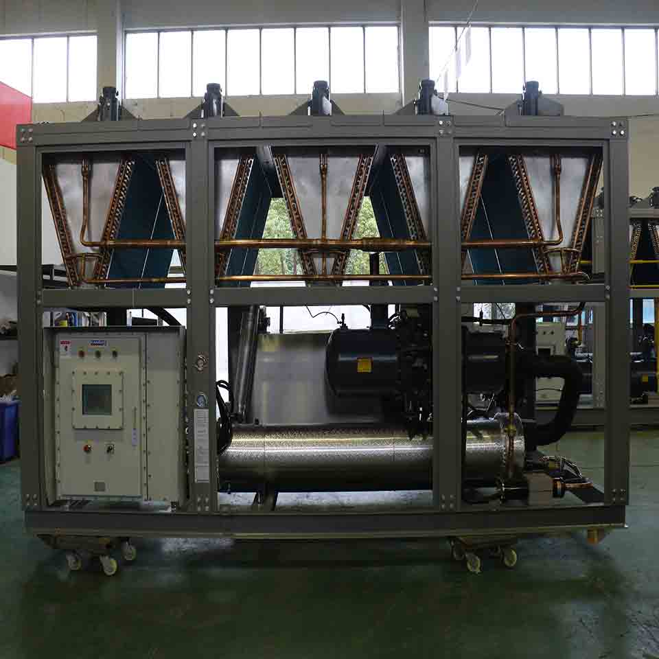 新材料生產(chǎn)用冷水機(jī)有些工藝要求防爆,防腐,變頻等這些在選型時(shí)要告訴生產(chǎn)廠家。