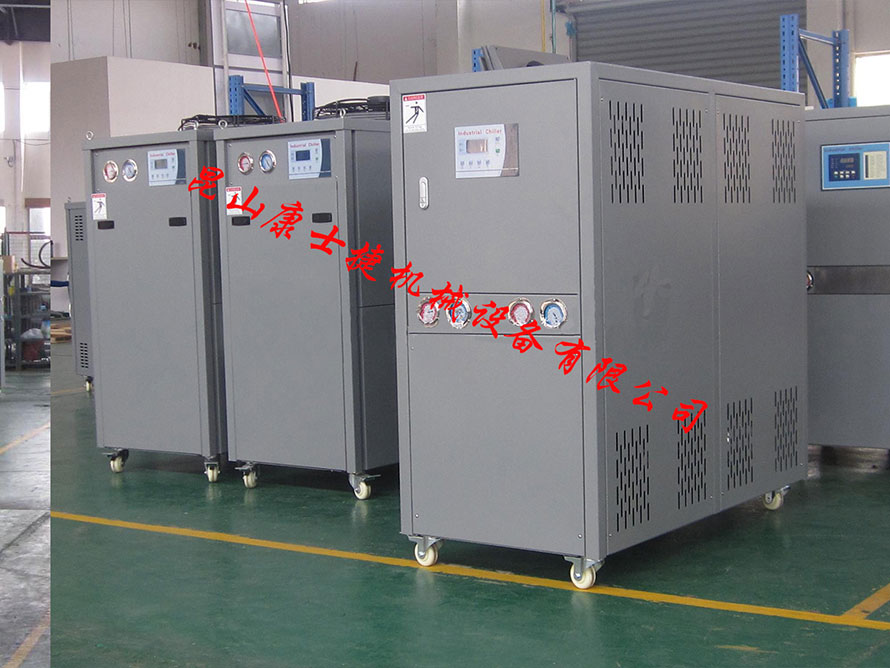 目前工廠(chǎng)使用較多的便是注塑機(jī),塑膠粒經(jīng)加熱溶化后注入模具中,凝結(jié)后,開(kāi)模頂出成型塑膠工件,在連續(xù)生產(chǎn)過(guò)程中有需用對(duì)模具進(jìn)行冷卻,以縮短塑膠凝結(jié)時(shí)間,提高工件尺寸精度,成型質(zhì)量、表面質(zhì)量。而在早期,很多用戶(hù)選用冷卻水塔為其降溫,這種冷卻方式只適合在環(huán)境溫度較低的情況下達(dá)到降溫目的,一旦環(huán)境溫度升高,則無(wú)法保證產(chǎn)品精度。因此,就需要使用到冷水機(jī)