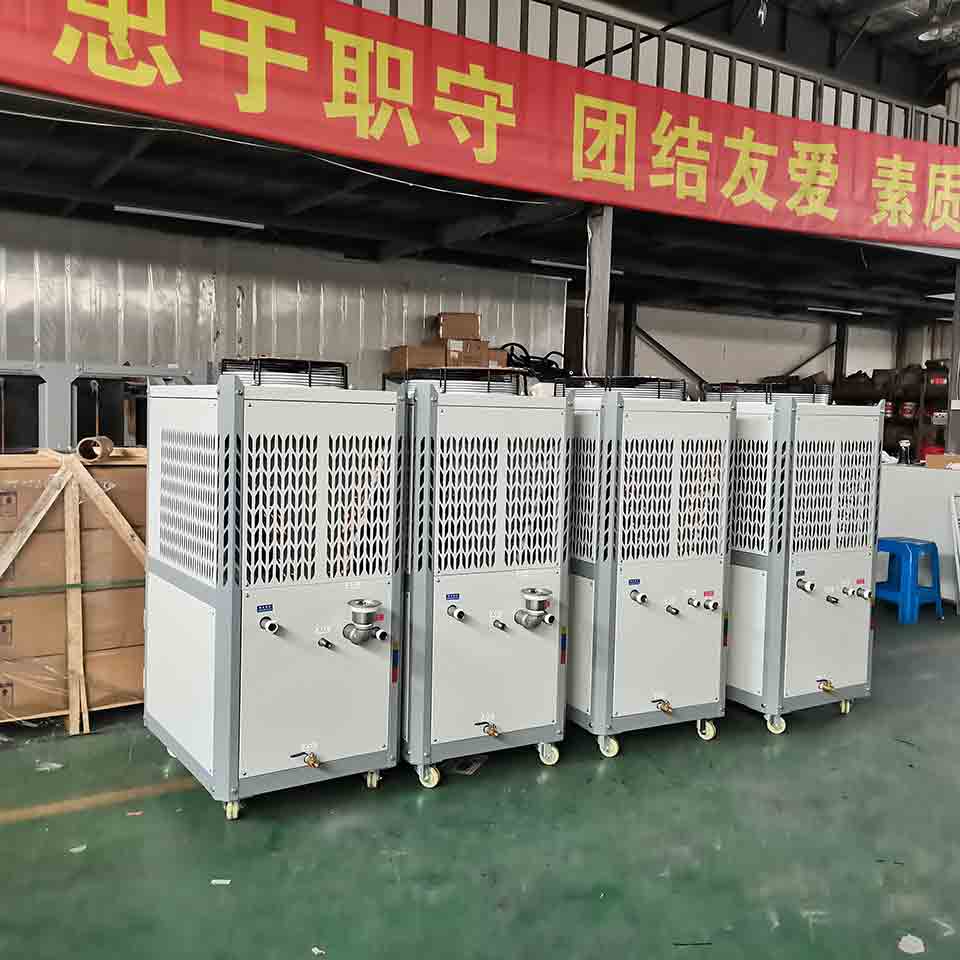 4.了解被冷卻的設(shè)備部位或出產(chǎn)加工質(zhì)料的體積、分量、比熱、密度,這樣能夠快速有有用的核算出所需冷水機(jī)的制冷量。一起記下被冷卻物料的初始溫度降到要求溫度所需求的時(shí)刻,這也是核算制冷量的途徑。還有就是清楚的知道出產(chǎn)設(shè)備或物料所需求或能接受的高、低溫度,以免對(duì)設(shè)備或物料造成影響;